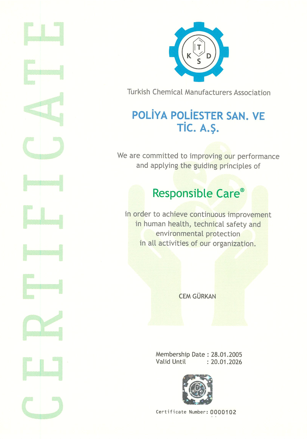 “Responsible Care” principles through all its opeerations an action